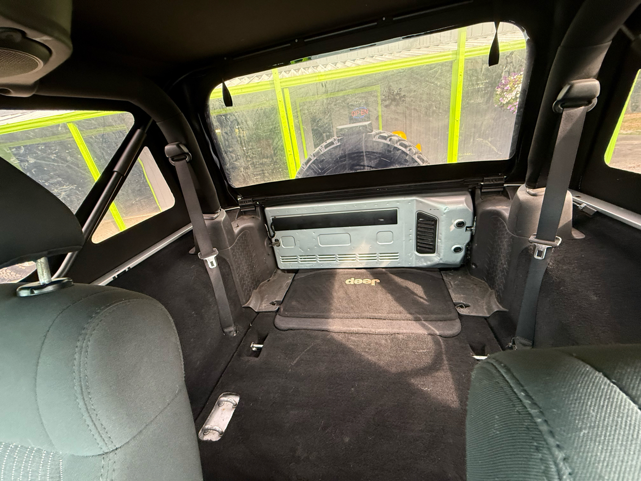 Don't worry about getting lost - the tachometer and tire pressure monitor are there to keep you informed every step of the way. And when the sun is shining, simply remove the top for a true open-air driving experience. With a full-size spare tire and cargo area tie-downs, you'll be well-prepared for any spontaneous adventure that comes your way. Plus, rest assured knowing that a Carfax report is available for this reliable and fun-loving Jeep Wrangler!